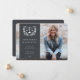 A formal but modern graduation photo announcement to celebrate those obtaining a Juris Doctor degree. Featuring a full-bleed photo with a colour overlay and law scales (with the 'JD' abbreviation) surrounded by a laurel wreath in white. The template text for the graduate’s details is completely customisable, so the font size, style, colour and placement can be changed. The back features a solid coloured background and template text for a longer message. If you would prefer to include no text on the back, just delete it before ordering. If you would prefer a photo on the back of the card, delete both the coloured background and the template text and upload your own photo. The design is available in other colours in my store.