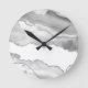 Grey White Marble Agate Simple Silver Sparkle Round Clock