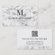 Grey White Marble QR Code Monogram Business Card
