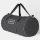 Minimalistic gym duffel bag design featuring minimalistic customisable name in white and grey.