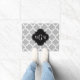 Grey White Moroccan #5 Black 3 Initial Monogram Doormat