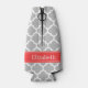 Grey White Moroccan #5 Coral Red Name Monogram Bottle Cooler