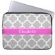 Grey White Moroccan #5 Hot Pink Name Monogram Laptop Sleeve