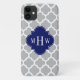 Grey White Moroccan #5 Navy 3 Initial Monogram Case-Mate iPhone Case