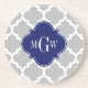 Grey White Moroccan #5 Navy 3 Initial Monogram Coaster