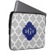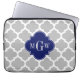 Grey White Moroccan #5 Navy 3 Initial Monogram Laptop Sleeve