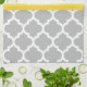 Grey and White Moroccan Quatrefoil Trellis Pattern #5, Pineapple Yellow Ribbon Name Monogram Label