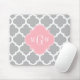 Grey White Moroccan #5 Pink 3 Initial Monogram Mouse Pad