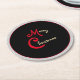 Grey White Pinstripes Black with Red Bow Round Paper Coaster