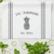Customise your kitchen with this cute personalised kitchen towel featuring your family name and year established in deep charcoal grey lettering accented with a pineapple illustration.