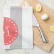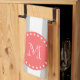 Grey White Stripes Pattern, Coral Monogram Tea Towel