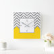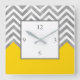 Grey White Yellow Chevron Colour Block Square Wall Clock