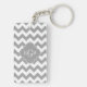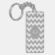 Grey Wht Chevron Dk Grey Quatrefoil 3 Monogram Key Ring