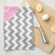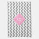 Grey Wht Chevron Pink Quatrefoil Monogram Tea Towel