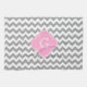 Grey and White Chevron ZigZag Pattern, Pink Quatrefoil Label Monogram