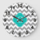 Grey Wht Chevron ZigZag Teal Quatrefoil Monogram Large Clock