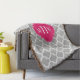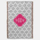 Grey Wht Moroccan #5 Raspberry 3 Initial Monogram Throw Blanket