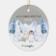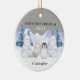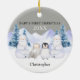 A baby's first Christmas ornament with a winter scene and woodland baby animals. Customise the year and the baby's name. The back and front of the ornament are the same.
