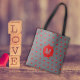 Grey with Red Hearts Monogramed Letter Tote Bag