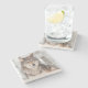 The coasters are gorgeous, a quality feel and heavy weight. They look like a precious archeological find. A rustic stone juxtaposed with a modern floral black and white print. I like the way the print goes slightly imperfect on the cut stone edges giving them a kind-of natural beauty.