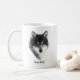 Grey wolf Canis lupus animal portrait in black and white. Elegant coffee mug for anyone. Customisable. You can change or delete a text under the image. You can also transfer this design to another product of your choice, just use an option to the right of this description.