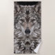 Grey Wolf Geometric Portrait Beach Towel