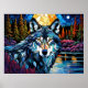 Grey Wolf in the Forest Stained Glass Look Poster