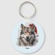 Grey Wolf Santa Hat Monogram Name Year Christmas Key Ring