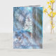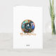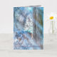 Alaskan Grey Male Wolf comes from behind a tree as the snow falls set in a pine forest winter snow landscape while his ancestor wolf spirit watches over. Orbs of light shape into a Christmas tree with white, turquoise and lite bluish colour palette. Inside card embedded text: "May the magic of the season fill your heart with joy."