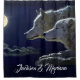 A pair of grey wolves shine under a full moon. This is a beautiful design for a couple.