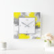 Grey Yellow Abstract Brushstrokes Square Wall Clock