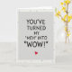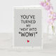 This greeting card centers on the message, “YOU’VE TURNED MY ‘MEH’ INTO ‘WOW!’” with the words set in black, simple block-style letters that feel a bit like casual handwriting. The text sits right in the middle inside a light gray rectangle, making it the main focus. Just under “WOW!” there’s a small red heart that stands out as the brightest spot on the card ❤️. Around the gray center panel, a wide off-white border frames everything nicely. Scattered across that border are many tiny pale blue hearts, spaced out in a loose, easy pattern. The overall look is sweet and straightforward, with the red heart adding a clear note of affection 💌. It’s a great pick for someone who makes your day better, and it pairs perfectly with a little treat like 🍫. Wishing you a happy Valentine’s Day and hoping you share your feelings with someone special.