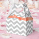 Modern grey and white zigzag or chevron pattern and a coral ribbon design gift box. Personalise text on back with a special message for guests.