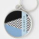 Grey Zigzag, Grey Chevron, Blue, Your Name Key Ring