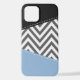 Grey Zigzag, Grey Chevron, Zigzag Pattern, Blue iPhone Case