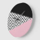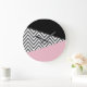 Grey Zigzag, Grey Chevron, Zigzag Pattern, Pink Large Clock