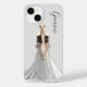 Zodiac Gemini Goddess Fashion Illustration iphone case. The drawing features two women that are back to back representing the air sign. Cute Gemini design for women born in the Gemini season. Perfect for May and June birthdays. The Gemini goddess illustration iPhone case will make a great gift to your friend, coworker, or daughter.