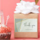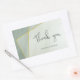 These simple, modern wedding thank you stickers feature a greyed jade colour theme with calligraphic elements, asymmetric gold frame accents, and marble texture appearance - by katz_d_zynes
