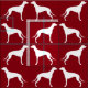 Greyhound Dog Silhouettes Pattern Red and White Fabric