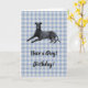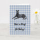 A birthday card for anyone who loves greyhounds! This card features a gorgeous black greyhound with a blue gingham background. The messages are customisable so you can make them your own.