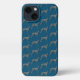 Greyhound Lurcher Cute Dog Silhouette Grid Blue iPhone Case