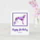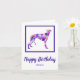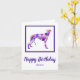 Greyhound / Lurcher dog silhouette in purple, pink, yellow and blue bright modern abstract pattern. Celebrate your fur-baby's special day with our adorable personalized card, specially designed for puppy birthday celebrations or for a dog lover! Funny birthday message inside can be changed to anything you want.
