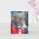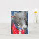 Beautiful black greyhound photo card, blank inside for your personalized message. This photograph of a black greyhound wearing a red jacket was taken on one of the Retired Greyhound Trust organized walks, at Portreath in Cornwall by Jayne Herbert.