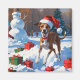 A sleek Greyhound dashes gracefully through the snowy landscape, wearing a festive red Christmas hat. This elegant winter scene reflects the breed’s speed, slim build, and gentle nature while capturing the joyful spirit of the holiday season. A heartwarming design full of festive charm.