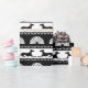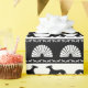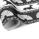 This design features greyhound silhouettes in the sphinx and standing positions in a classic monochromatic black and white colour scheme. Embracing an Art Deco style, the greyhounds are accompanied by a fan motif. Overall the impression is elegant and understated.