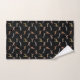 This greyhound bath towel design features greyhound silhouettes in a range of familiar greyhound poses. The metallic shades of greyhound silhouettes are situated on a black background.