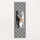 Two sister greyhounds sitting. A pattern of greyhounds running in the background. The downward dog of all mats, you'll be the envy of the whole yoga class with this one.