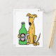 Funny and cool greyhound puppy dog has his paw around a bottle of beer in this cute fun original art design.
