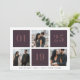 Announce your upcoming nuptials with these chic save the date cards featuring three of your favourite square photos and your wedding date in a gridded layout with alternating burgundy plum squares. "Save the Date" appears beneath along with your names and wedding location.