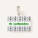 This badge design features a grid of music notes. It also features a customisable name in green coloured text within a white coloured band. A badge like this could perhaps be worn by a teacher, educator, tutor or professor during the early weeks of a school year or a course. It might help the students learn and remember their teacher’s name. [~Z0000175]